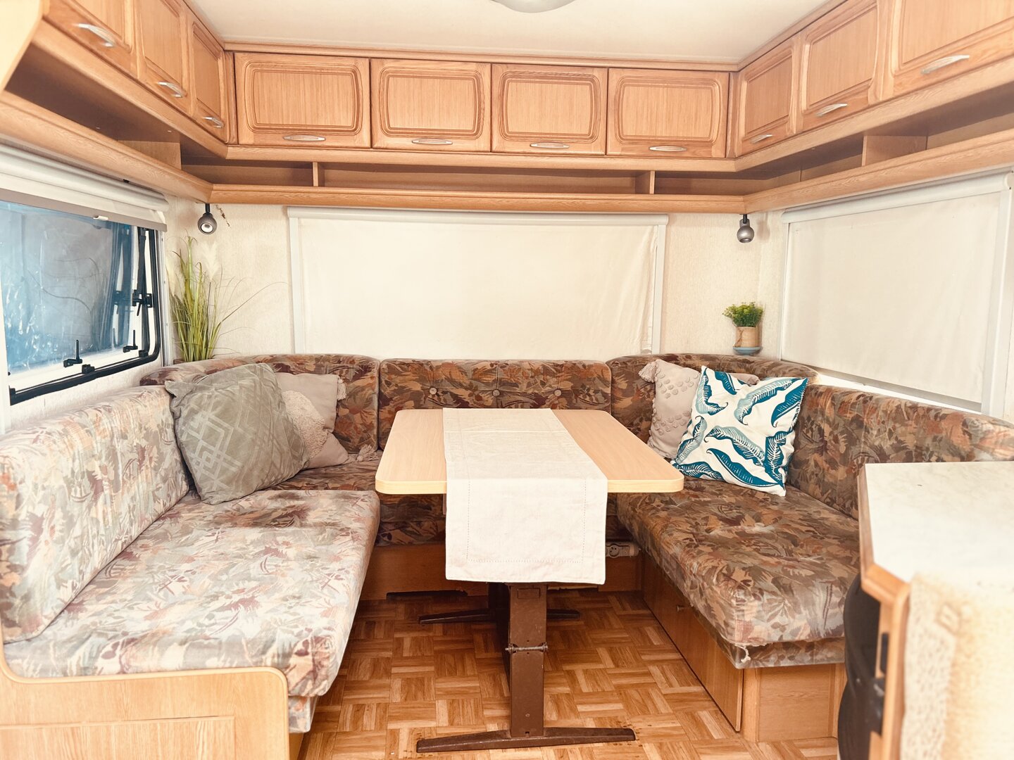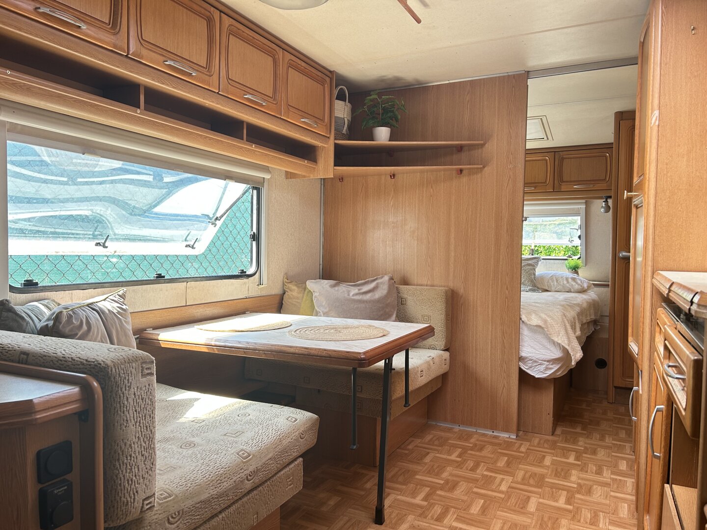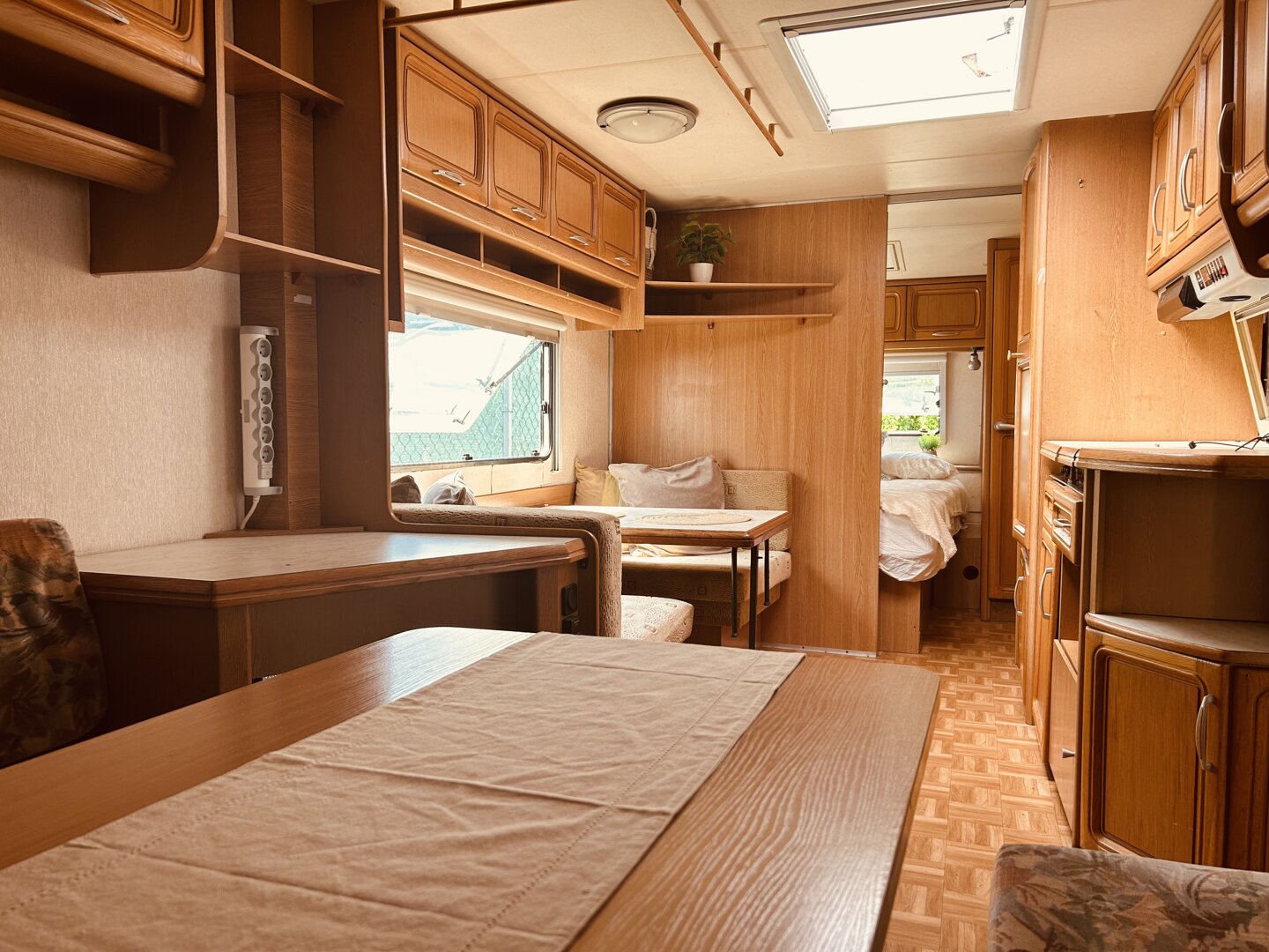 Zuzia to przyczepa kempingowa przeznaczona dla maksymalnie 6 osób. Składa się z dwóch przytulnych sypialni oraz części dziennej. Na gości czeka wygodne łóżko małżeńskie, pojedyncze łóżka piętrowe oraz rozkładane łóżko podwójne w kształcie podkowy. Przy